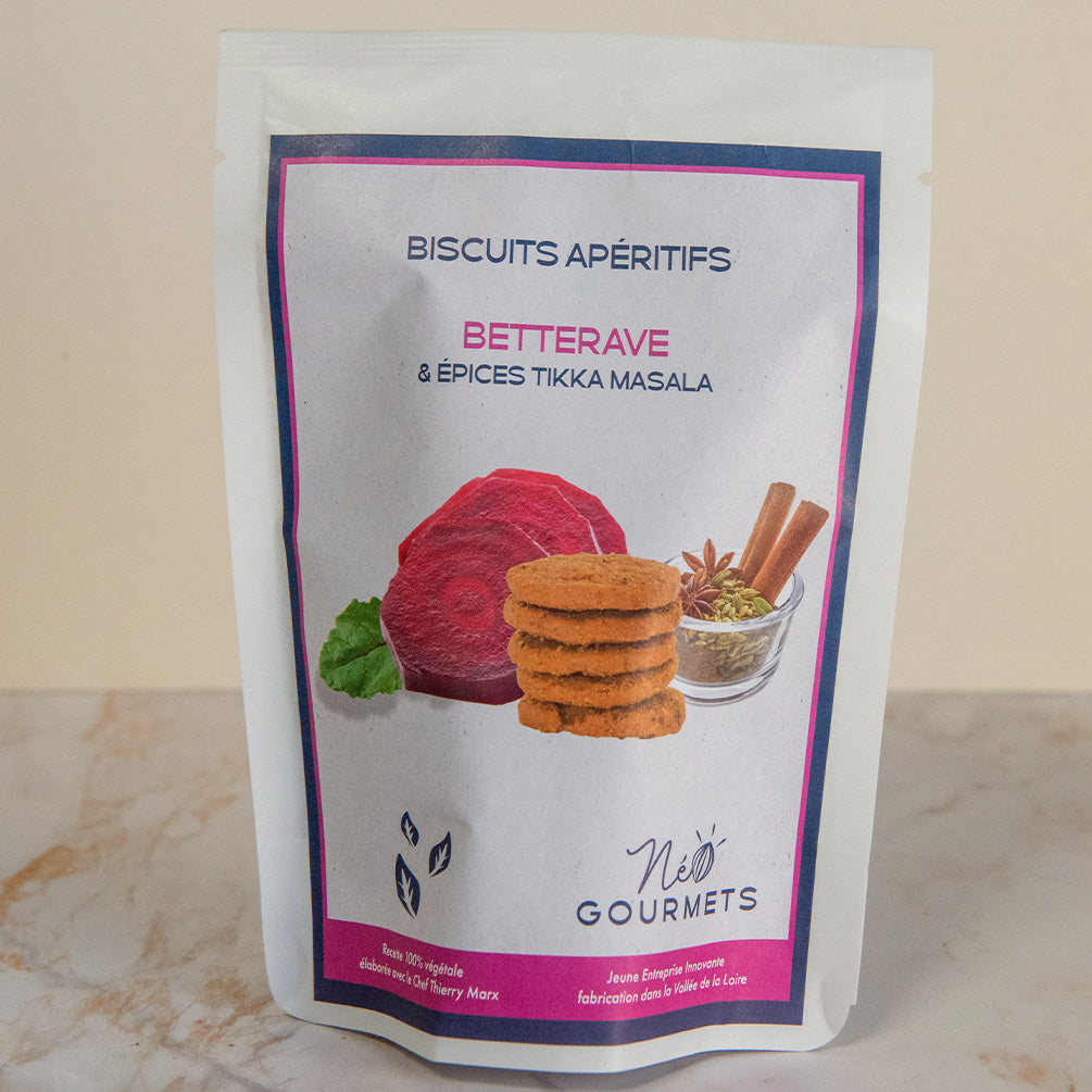 Découvrez une expérience gustative unique avec nos nouveaux biscuits apéritifs à la betterave et aux épices tikka masala, une association vibrante qui ravira les amateurs de saveurs originales et relevées.