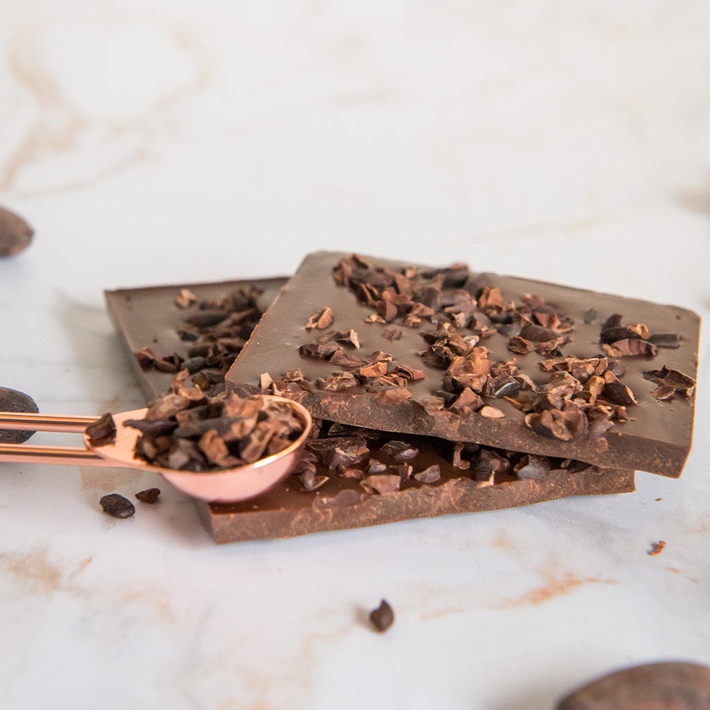 Le croquant des éclats de fèves avec le fondant de notre chocolat noir 70%...