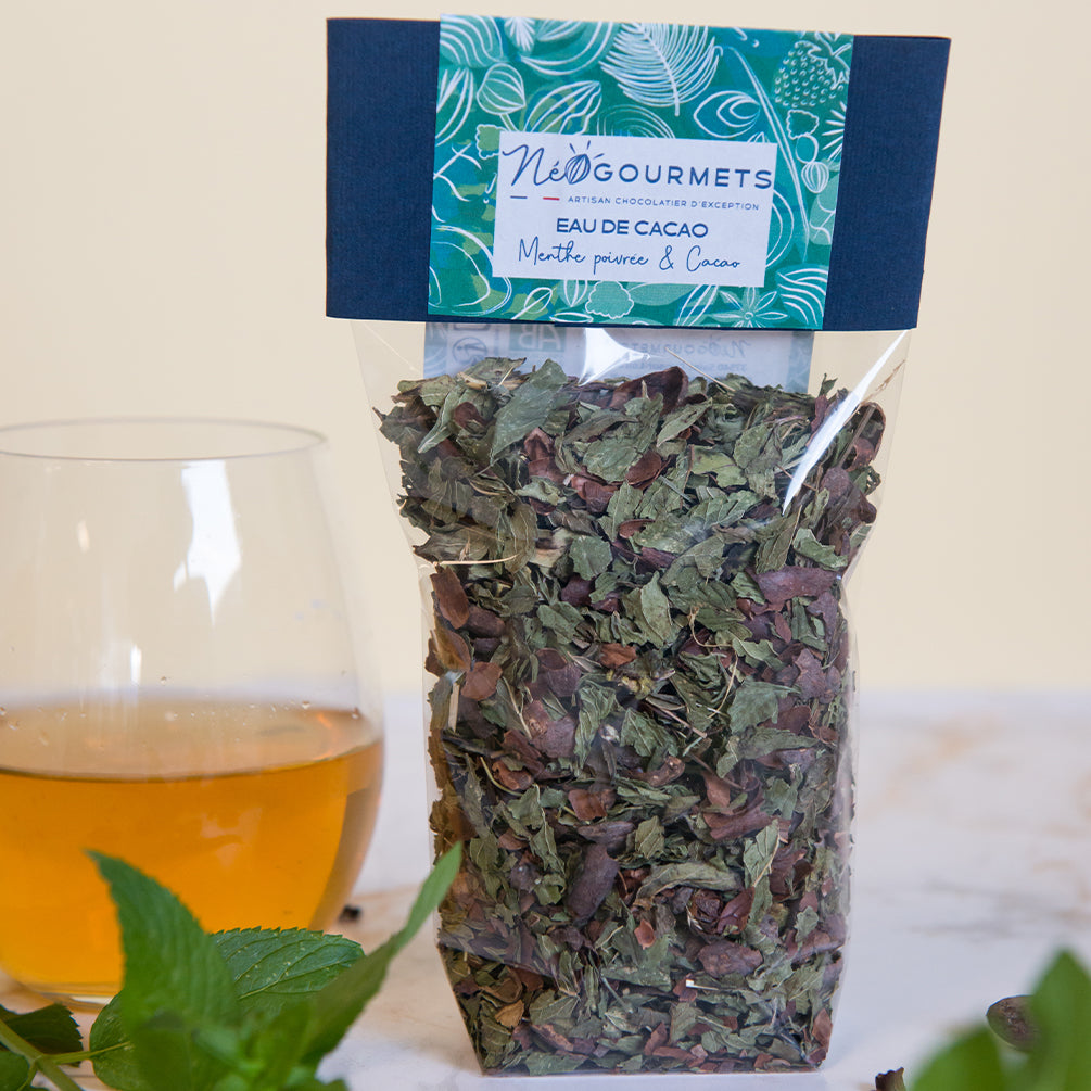 Découvrez notre nouveauté pour vous désaltérer de façon gourmande tout l'été ! Nos cosses de fèves de cacao associées aux feuilles de menthes poivrées s'infusent à froid pour vous offrir une boisson originale, gourmande et sans calories !