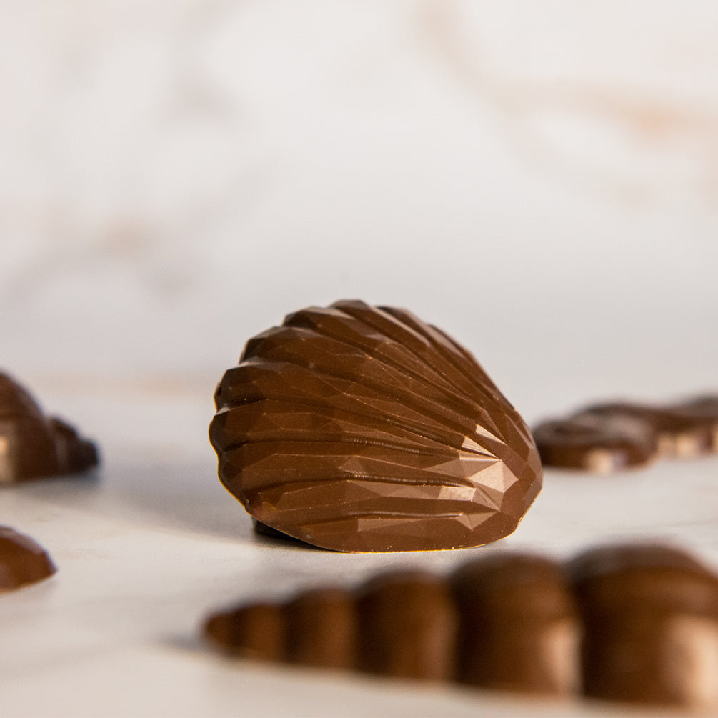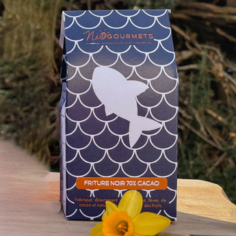 Redécouvrez la magie de Pâques avec nos fritures de Pâques, disponibles en noir 70% intense ou en lait 50% onctueux. De délicates silhouettes de poissons et coquillages, parées de leur boîte écailles graphiques pour un design vibrant et moderne. Travaillées directement à partir des fèves de cacao bio et équitables dans notre atelier, elles offrent une intensité pure, équilibrée avec justesse par la douceur de la datte.