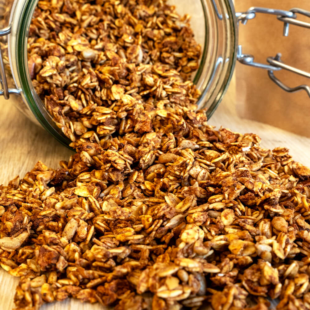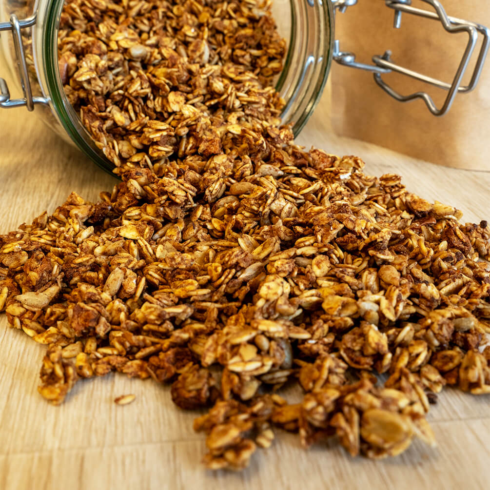 Retrouvez le goût authentique de la tarte aux pommes de votre enfance, dans un granola sain et croustillant.