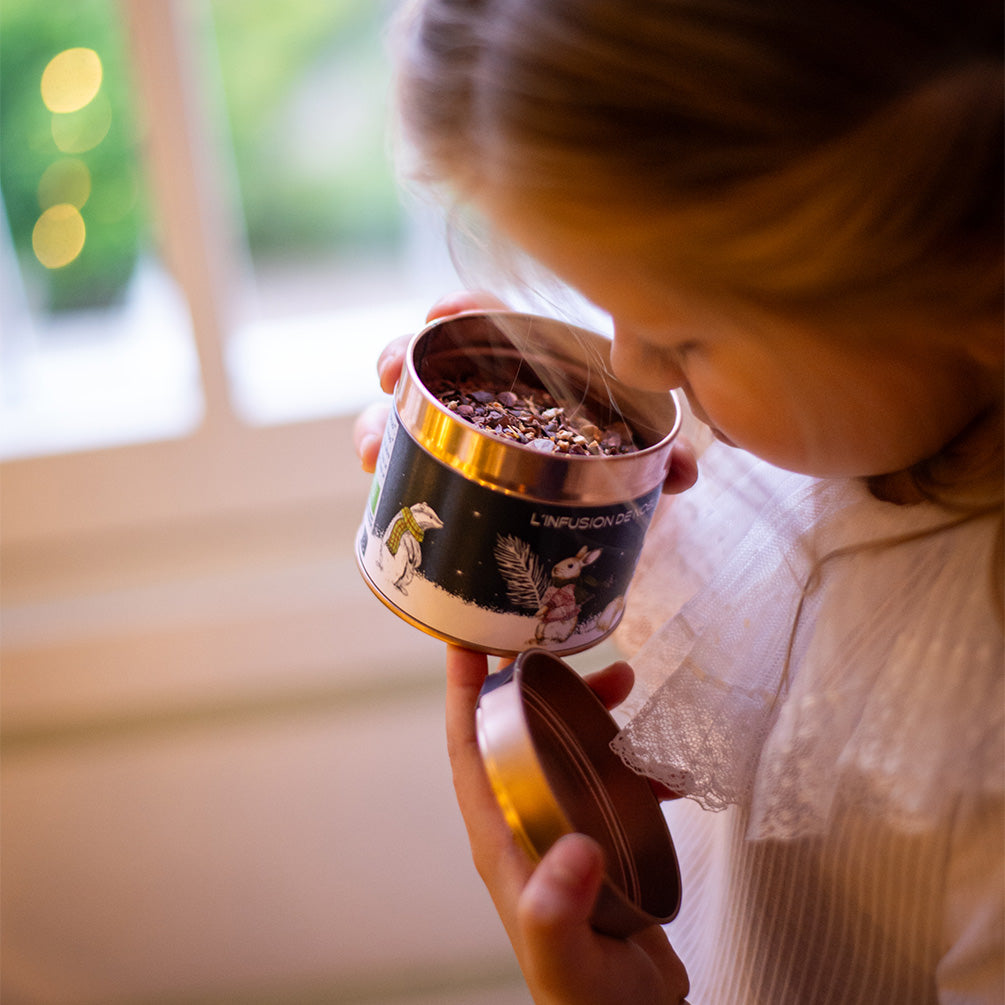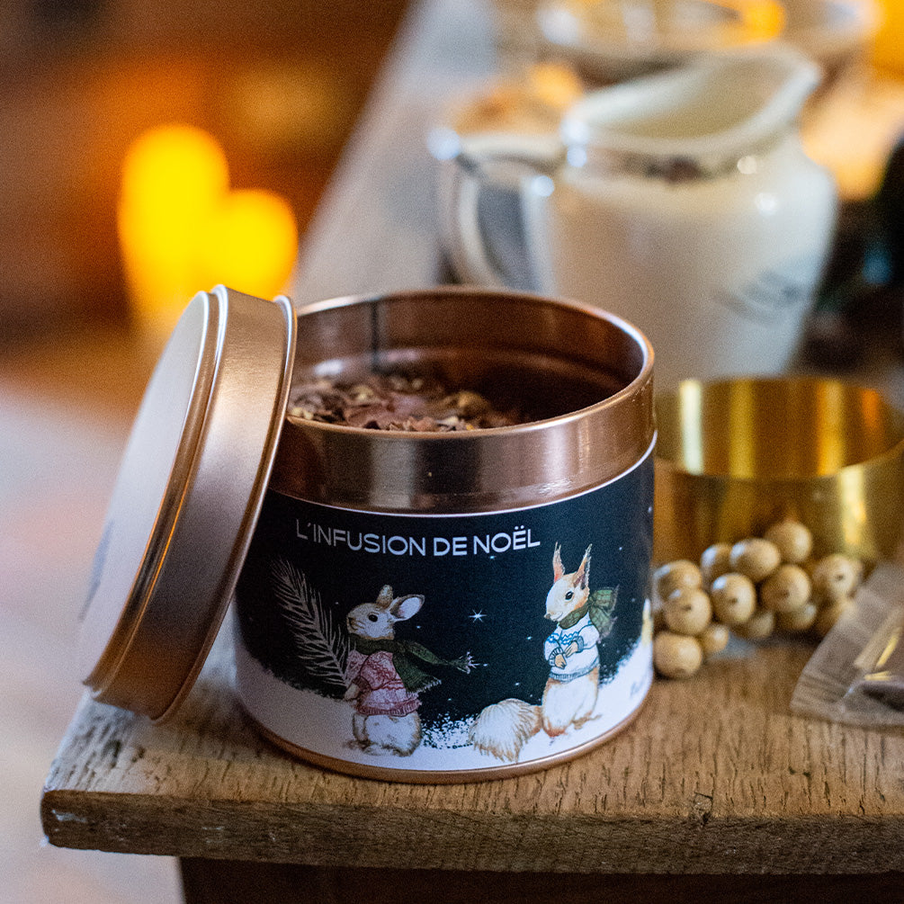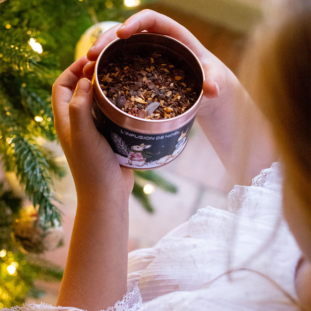 L’Infusion de Noël Petit Berge X Néogourmets est une création festive et gourmande, idéale pour accompagner les soirées d’hiver. Certifiée bio, elle séduit par un mariage harmonieux de saveurs fruitées d’orange, chocolatées avec les cosses de fèves de cacao, et épicées (cannelle, badiane, gingembre, cardamome, clou de girofle, anis étoilé).