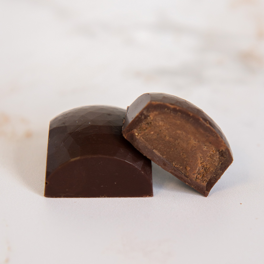 Nos bouchées les plus gourmandes... Un best seller qui vous invite à partager la magie des fêtes de fin d'année ! Moins de sucre mais un maximum de plaisir pour des moments de gourmandise partagée ou privilégiée, sans aucune culpabilité ! Dans ce coffret de bouchées, vous trouverez 12 bouchées de notre chocolat noir 70% cacao associé à la gourmandise d'un cœur fondant aux noisettes du Piémont IGP, au chocolat blanc végétal et à la vanille bourbon . Des bouchées aux saveurs régressives mais sans excès de sucre.